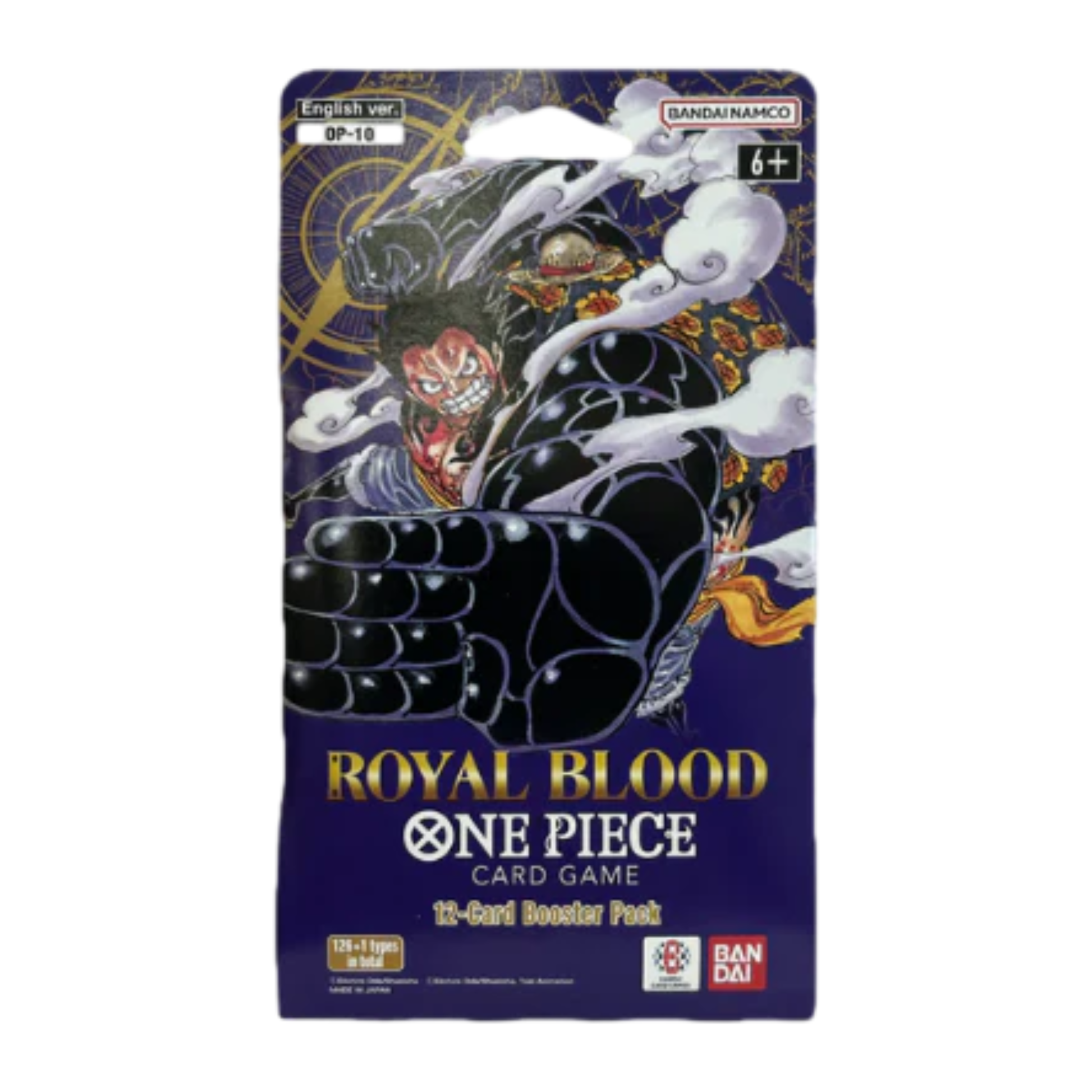 The OP-10 Royal Blood Sleeved Booster Pack is a sealed English booster pack from the One Piece Card Game, released in March 2025. This expansion centers on the Punk Hazard arc, strengthening popular archetypes such as the Donquixote Family and Supernovas.